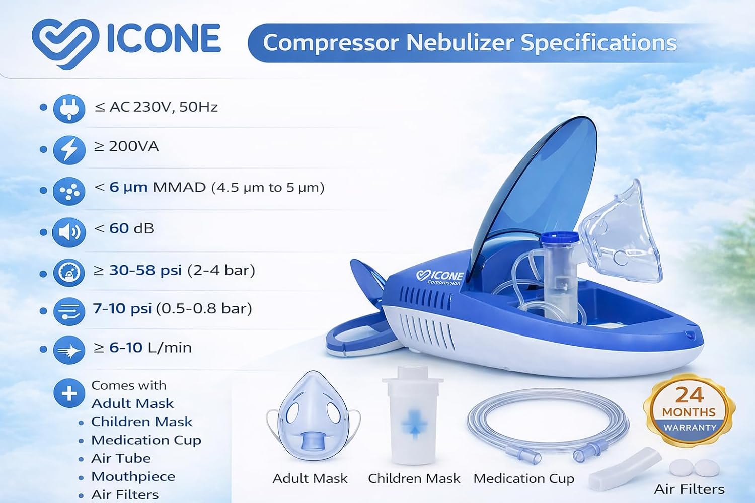 جهاز نيبولايزر ( إستنشاق البخار ) المنزلى ماركة ايكون ICONE مستورد ضمان سنتين